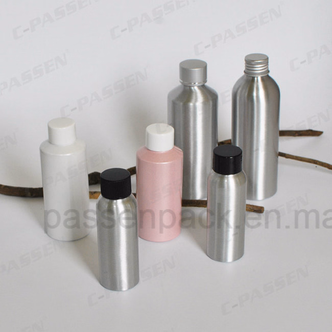 5) botella de aluminio con tapa de rosca de pláStico y aluminio